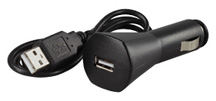 Available separately is a car charger that fits into a standard car outlet for charging. Charger has a 2.5-foot cord. Auto-charger, click here to order.